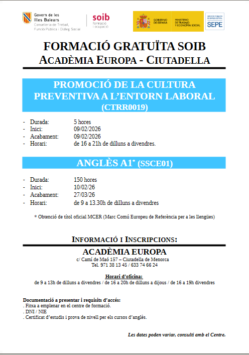 Formació gratuïta SOIB – Acadèmia Ciutadella