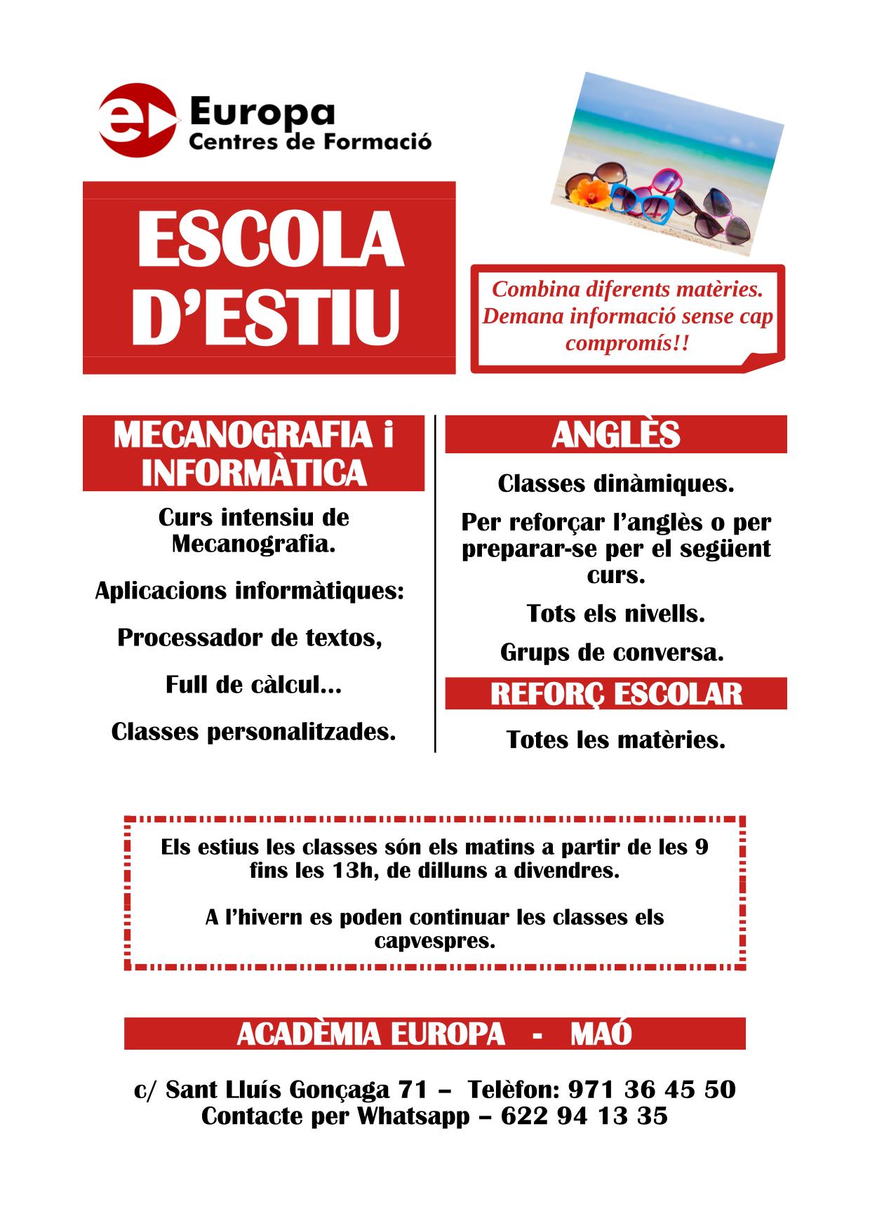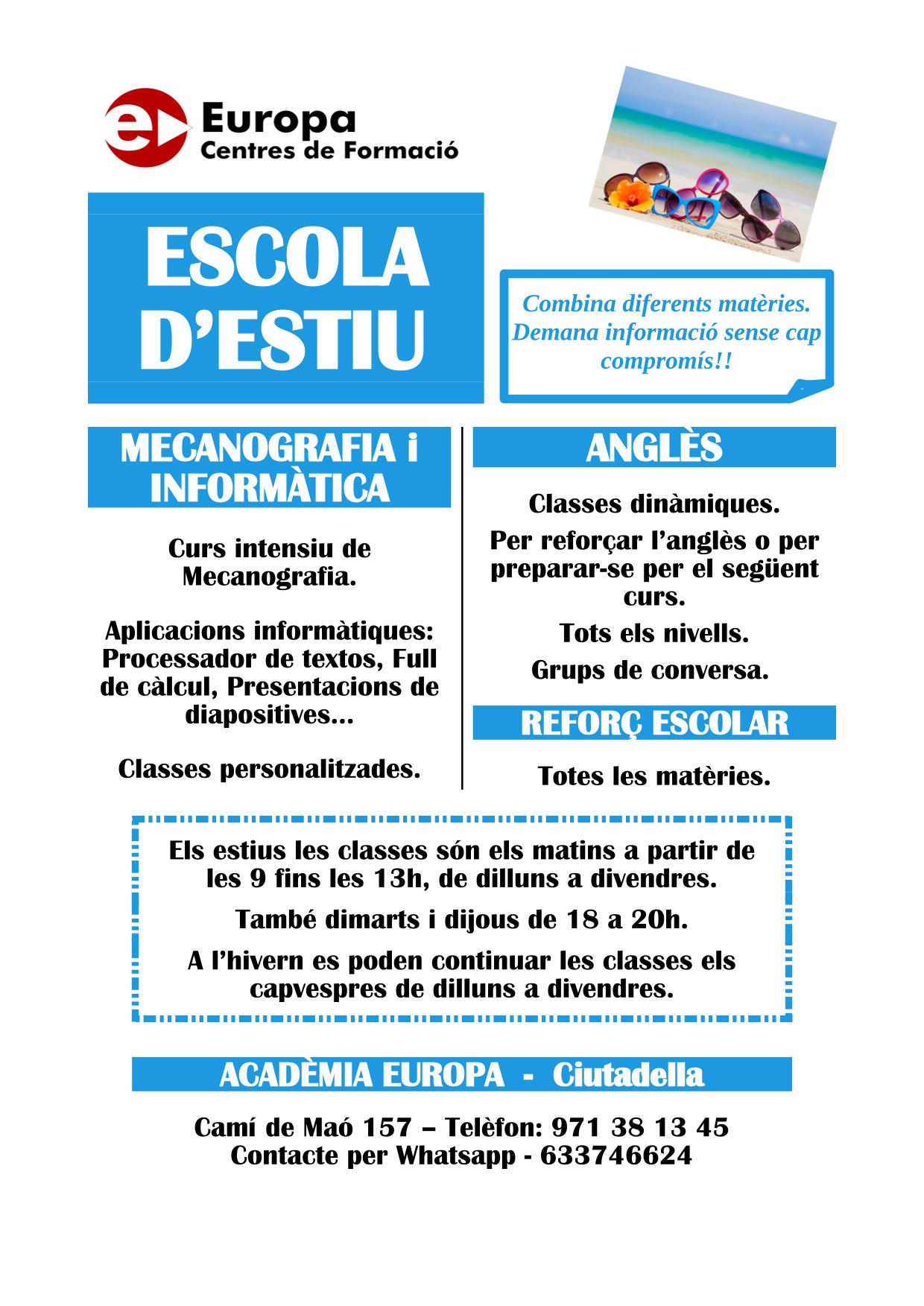 Durante los meses de JULIO y AGOSTO se ofrecen cursos intensivos de MECANOGRAFÍA, INFORMÁTICA, INGLÉS e INGLÉS CONVERSACIÓN.