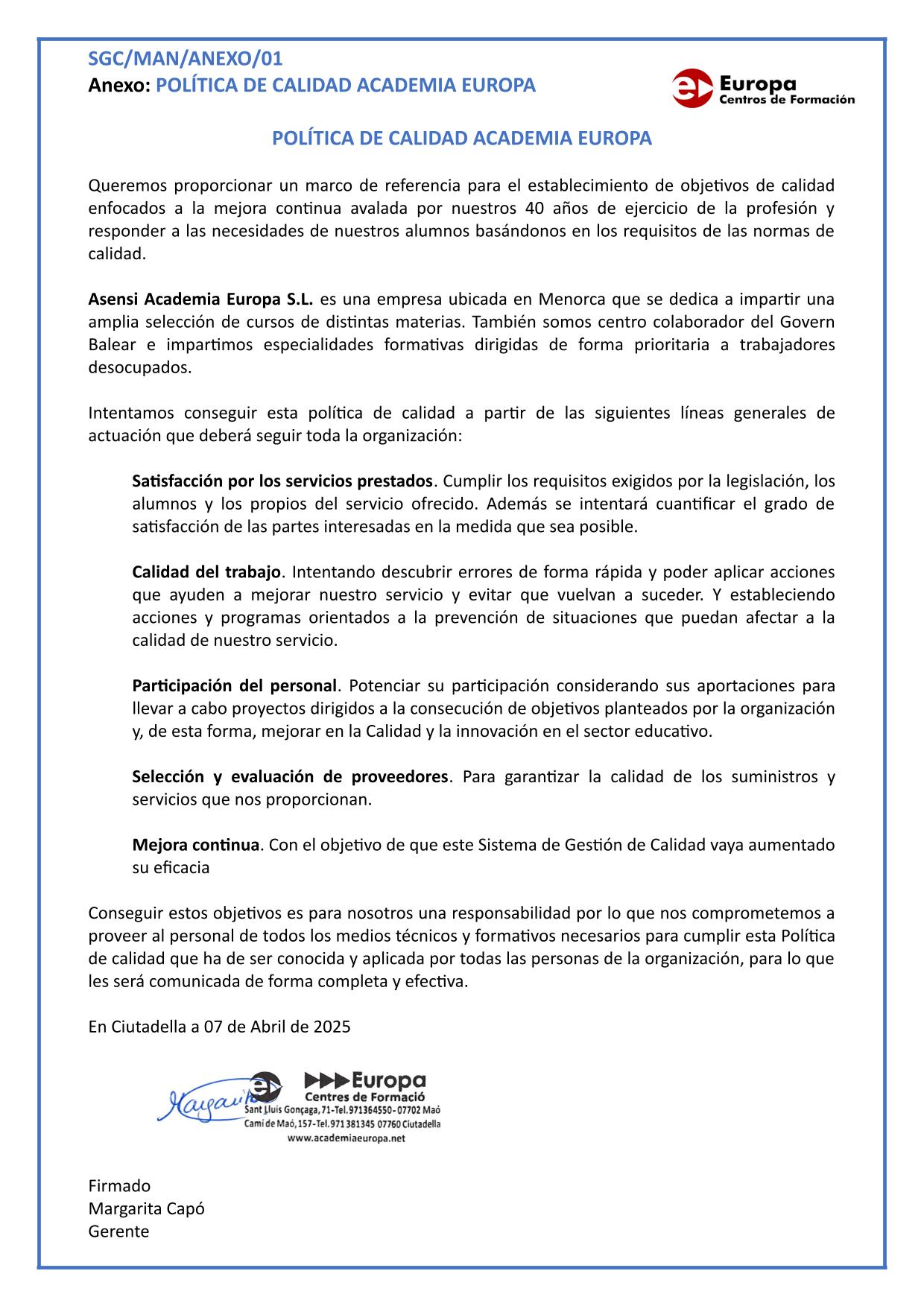Política de calidad